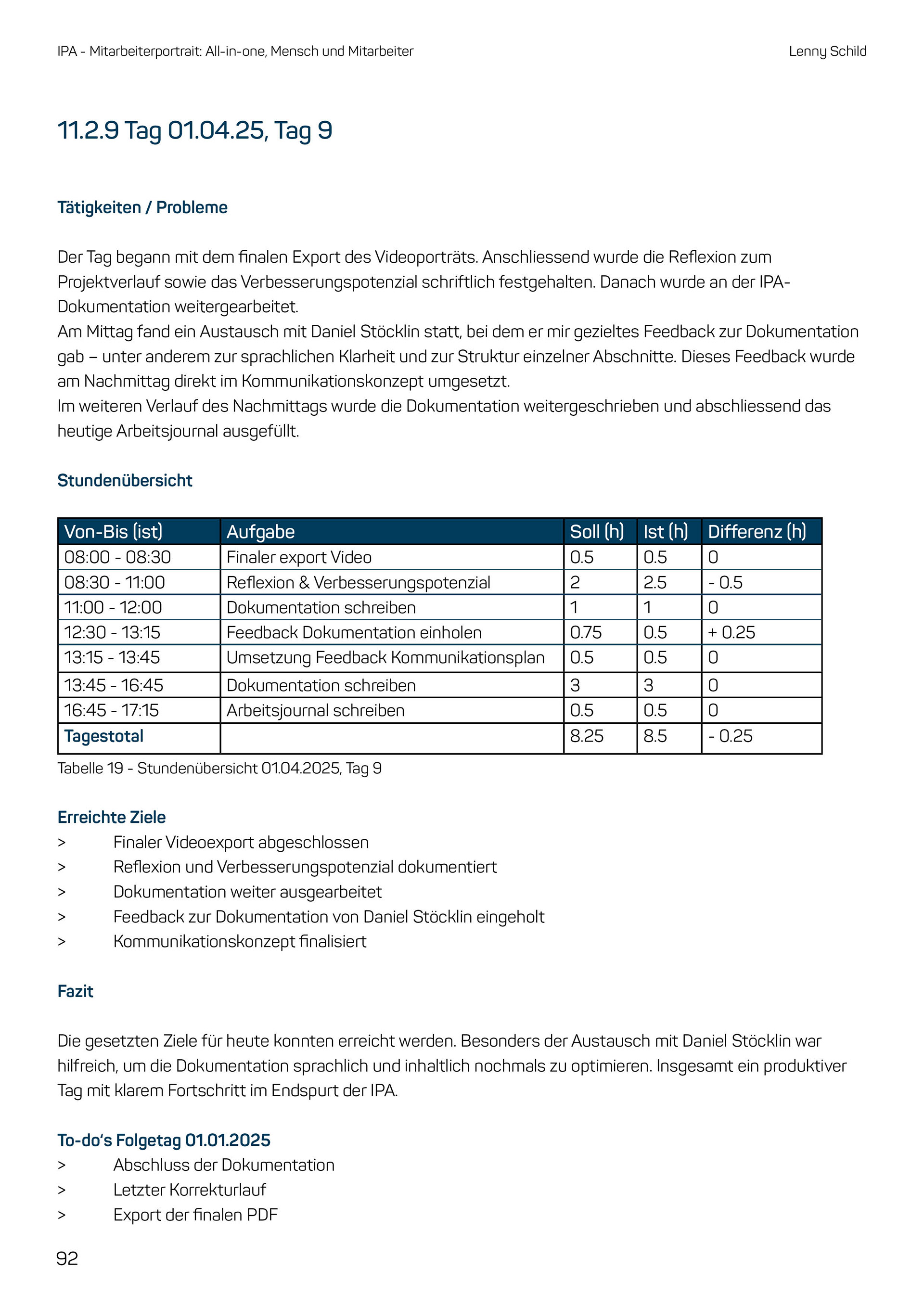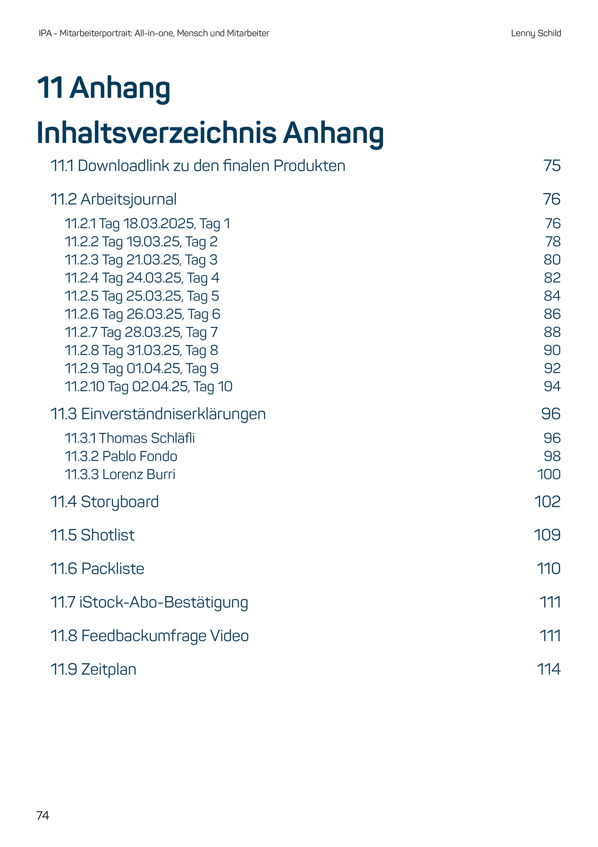 All-in-one – Mensch und Mitarbeiter Für meine individuelle praktische Arbeit (IPA) im letzten Lehrjahr als Mediamatiker wurde ein videobasiertes Mitarbeiterporträt konzipiert und produziert. Im Zentrum stand nicht die Firma selbst, sondern der Mensch dahinter – mit seinen Werten, seiner Motivation und seinem Alltag. Die Umsetzung erfolgte nach der IPERKA-Methode und umfasste neben dem Video auch ein Kommunikationskonzept und ein passendes Keyvisual. Das Resultat ist ein authentischer Kurzfilm, der zeigt, wie Employer Branding durch echte Geschichten wirken kann – ohne inszenierte Überhöhung, sondern mit ehrlichem Storytelling, professioneller Technik und emotionaler Tiefe.
